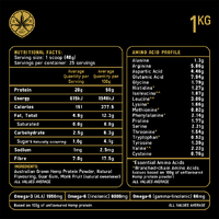 Ingredients: Australian Grown Hemp Protein Powder, Natural Flavouring, Pink Himalayan Rock Salt, Monk Fruit (natural sweetener) Guar gum